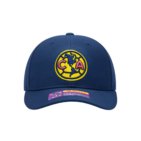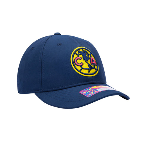 This Standard Adjustable hat features a front 3D embroidery of the team logo and a sonic weld suede wrap label on the back. That style of the hat is very crisp as it only utilizes one of the team colors for its crown, peak and snapback.
